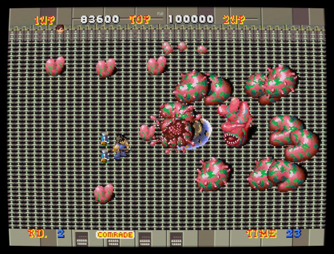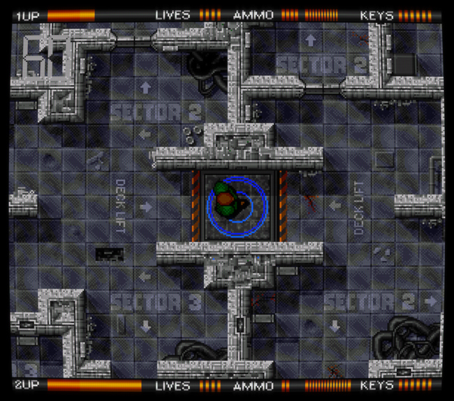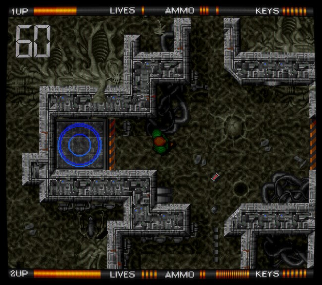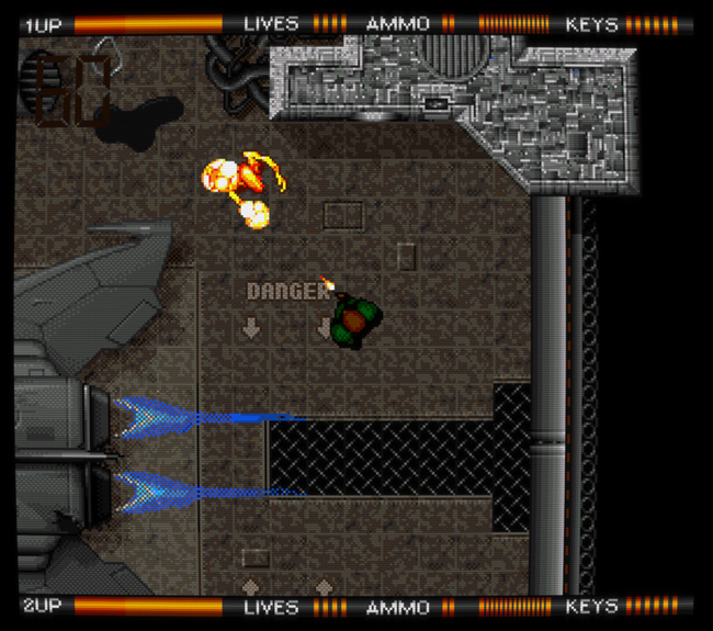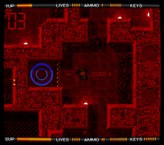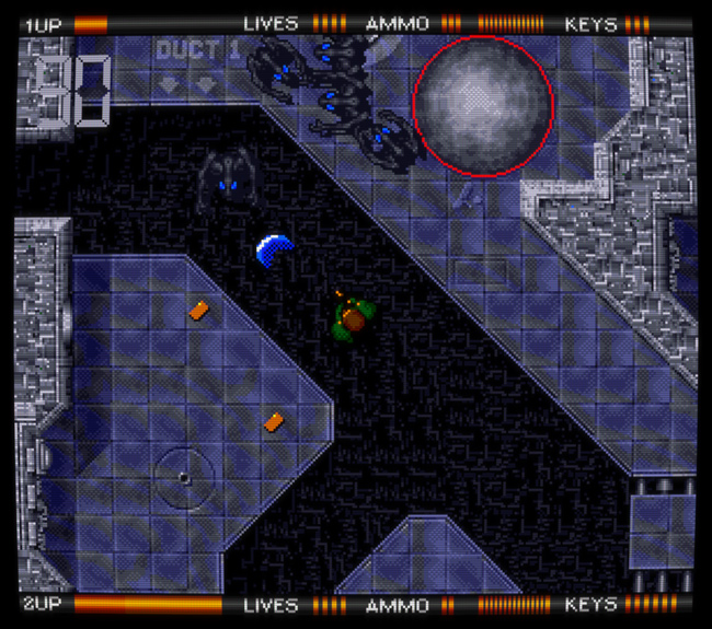 Alien Breed de Team17 est une série née sur Amiga en 1991 ; on pourrait décrire brièvement son premier volet, analysé en détail plus bas, comme un jeu de tir futuriste et horrifique vu du dessus. C'est un incontournable de l'ordinateur 16 bits, faisant partie de la douzaine de jeux Amiga auxquels j'ai encore du plaisir à jouer aujourd'hui (je ne dirais pas la même chose du reste de la série sur la machine, composée de quatre jeux en 2D suivis de deux jeux copiant le rendu 3D de Doom). Presque vingt ans plus tard, Team17 (plutôt connu pour la série des Worms) a annoncé un reboot de la série, une trilogie publiée épisode par épisode sur les principaux services de jeu dématérialisé, puis une édition physique complète sur ces mêmes supports (Xbox 360, PS3, PC) une fois la trilogie terminée. ![]() Naturellement, avoir "ses racines en 1990" était alors proféré comme une insulte, censé expliquer un gameplay très pauvre – cette critique, qui affirmait également que la série Alien Breed copiait Alien Syndrome (arcade, SEGA), est typique de ce travers de la presse vidéoludique consistant à parler avec aplomb de ce que l'on ne connaît pas : voilà une occasion idéale de rétablir quelques faits concernant Alien Syndrome, le premier Alien Breed sur Amiga, et cette nouvelle trilogie de Team17 qui comporte en réalité quatre jeux puisque son premier volet a connu deux versions distinctes... Un petit détour du côté de chez SEGA (Alien Syndrome)Précédant Alien Breed de quatre années, Alien Syndrome est un jeu d'arcade de 1987 qui lui ressemble à priori comme deux gouttes d'eau : tous deux sont des jeux de tir en 2D vus du dessus et sont jouables seul ou à deux en coopération ; tous deux sont fortement inspirés par ALIEN et surtout Aliens (sorti en 1986) puisqu'ils nous font affronter des hordes extraterrestres bestiales dans des labyrinthes métalliques (ou organiques) sous la menace de l'autodestruction imminente d'une station spatiale ; tous deux partagent un panel d'armes similaire (arme de base, boules d'énergie, lance-flamme, laser) et comportent des bornes où l'on peut consulter la carte du niveau en cours ; tous deux ont des boss énormes, voulus spectaculaires... En fait, leurs similitudes sont si évidentes que Alien Syndrome est souvent cité pour décrire brièvement Alien Breed, et pourtant, ce sont de parfaits faux amis, complètement différents sur leur fond comme leur forme et donc passionnants à comparer. Sur le fond, malgré les apparences, on pourrait argumenter que Alien Syndrome est une variante de Pac-Man (!) : on y évolue dans un labyrinthe ouvert au tracé très simple afin d'y collecter des objets (ici, des "camarades" prisonniers de cocons à la Aliens) qui permettront de débloquer l'accès au niveau suivant. Dans ce labyrinthe, des ennemis errent plus ou moins au hasard alors que d'autres nous pourchassent, mais on peut se défendre en ramassant des powerups placés à des endroits précis. ![]() Bien entendu, malgré ces grandes lignes, il y a des différences importantes... Principalement, l'action de Alien Syndrome est très zoomée par rapport à Pac-Man : les couloirs du labyrinthe sont plutôt larges et certaines zones y sont vastes et dégagées, avec des hordes grouillantes qui ont tendance à nous encercler. On peut se déplacer dans huit directions, et se défendre par défaut en tirant des balles à courte portée ; les armes collectées, plus puissantes, remplacent l'arme actuelle jusqu'au niveau suivant, et l'on peut de surcroît équiper jusqu'à deux "options", des robots qui tirent dans notre dos et protègent ainsi nos arrières. Il n'y a pas de munitions. Les monstres et notre héros meurent en un coup, mais les générateurs de monstres sont plus résistants et risquent de nous faire perdre beaucoup de temps. Lorsqu'on meurt, on réapparaît aussitôt en bénéficiant d'une brève invincibilité, sauf si notre mort résulte de l'explosion de la station, auquel cas on devra recommencer le niveau. Alien Syndrome est un jeu d'arcade typique de l'époque : une action très simple, prenante et immédiatement compréhensible, un joystick et un unique bouton, mais un défi relevé, sa principale difficulté provenant de ses contrôles classiques – comme on doit se tourner vers un ennemi pour lui tirer dessus mais que l'on est environné d'ennemis mortels aux trajets peu prédictibles (sans parler des projectiles), on doit constamment arbitrer entre l'attaque et l'esquive, un peu à la manière d'un Commando multidirectionnel (arcade, Capcom, 1985). Les boss, quant à eux, peuvent nous tuer à répétition tant que l'on n'a pas bien saisi leur logique, mais ils deviennent assez faciles lorsqu'on les connaît, surtout équipé de la bonne arme (dans le doute, choisir le laser). ![]() Avec assez de crédits, la difficulté est bien plus clémente lorsqu'on joue à deux (on peut incarner un homme ou une femme, Ricky ou Mary) puisqu'on peut alors continuer après un Game Over, chose impossible en solo. Dans les deux cas, le jeu et son scoring s'avèrent toujours amusants et stimulants aujourd'hui, avec une dimension de risque/récompense intéressante. Sur la forme, malgré l'influence évidente de Aliens (le design des monstres du second niveau frôle le plagiat), l'esthétique est ici plutôt "pulp", claire et colorée, avec des extraterrestres excentriques à la fois perturbants et comiques, rappelant la borne d'arcade tirée de Aliens (Konami, 1990), ça a un charme fou ! Techniquement, le jeu est très propre et fluide, avec trois plans de scrolling différentiel superposés et de jolis effets de transparence. Il n'y a que deux musiques accompagnant le jeu, une pour les phases de sauvetage et une pour les boss, mais elles sont très réussies, instaurant une ambiance pesante. Player one requires keys (Alien Breed sur Amiga)Si Alien Syndrome était en quelque sorte Pac-Man croisé avec Commando pour un résultat