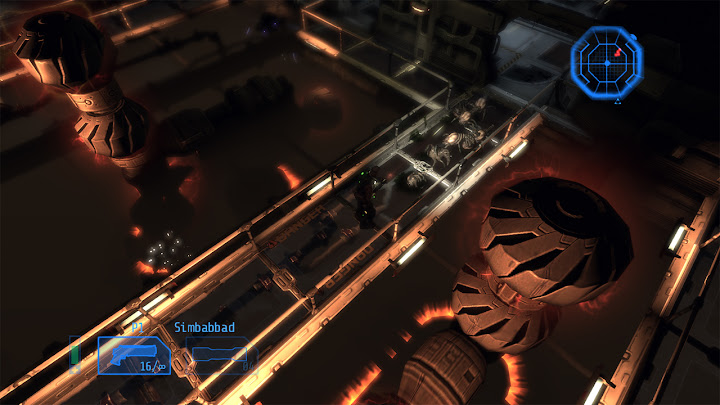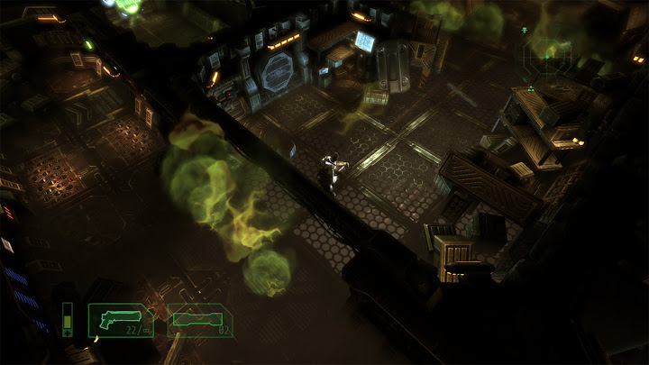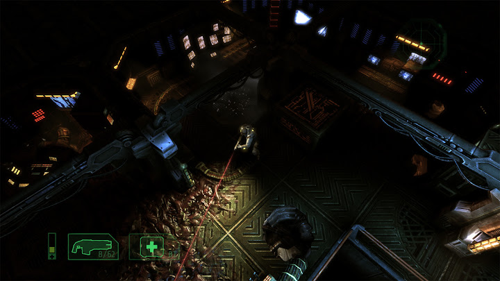 Cela crée une situation intéressante, puisque l'on peut mesurer ici précisément l'impact de ces ajouts : ils ne corrigent pas tous les problèmes de Alien Breed Evolution, mais ils transforment un jeu médiocre en bon jeu pourvu qu'on l'aborde correctement. Le retour des magasins Intex est particulièrement important puisqu'ils rendent un degré de liberté décisif au joueur : ils permettent ainsi d'opter pour différentes stratégies en privilégiant certains outils, armes ou capacités, et la gestion des ressources est encore approfondie par le fait que chaque magasin présente ses propres limitations de stocks – il peut donc être prudent d'acheter certains objets à l'avance, car on ne sait pas quelles quantités seront disponibles ailleurs. Les armes elles-mêmes ne sont pas négociables, mais on peut améliorer celles que l'on a ramassées en vitesse de rechargement, débit, ou dégâts infligés. Dans ce dernier cas, la nouvelle puissance de feu est très visible (et audible), ce qui est extrêmement satisfaisant, surtout pour le lance-flamme, très utile face aux groupes. On peut aussi accroître la puissance des grenades, la vitesse d'utilisation et l'efficacité des kits de soins, ou bien l'intensité de nos coups de crosse. Les arbitrages sont cruciaux et rendent le jeu plus varié et plus intéressant. ![]() La meilleure différenciation des races ennemies est aussi appréciable, on sait désormais d'un seul coup d'œil s'il faut se préparer à esquiver des projectiles ou une charge, même si le jeu reste davantage un survival horror qu'un jeu d'action. Enfin, la possibilité de désactiver les points de navigation semble en théorie idéale pour casser l'aspect "reliez les pointillés" du jeu, renouant avec des éléments d'exploration typiques du survival horror que l'on trouvait déjà dans le premier Alien Breed ou, plus classiquement, dans Resident Evil ou Silent Hill par exemple ; mais ici cela ralentit trop le rythme et produit plus d'agacement que d'immersion ou d'anxiété : comme je l'ai déjà expliqué, malgré la qualité des graphismes et le soin apporté aux décors, le jeu propose un level design trop dense et imbriqué (voire fouillis) pour que l'on s'y repère intuitivement, il vaut donc mieux privilégier en l'occurrence la facette "arcade" du jeu et garder le guidage automatique. On le verra, ça sera l'inverse dans le prochain épisode... Finalement, malgré une mauvaise réputation héritée du faux pas qu'aura été Alien Breed Evolution, Alien Breed Impact est un jeu réellement bon : si l'on ne s'attend pas à jouer à un jeu "action/tactique" comme Alien Shooter 2 : Reloaded ou à un jeu d'action multijoueur nerveux comme le Alien Swarm de Valve, et qu'on accepte au lieu de ça la nature "survival horror light" du jeu signé Team17, on passe quelques heures très agréables (une heure par chapitre environ, pour cinq chapitres), surtout si l'on démarre sa partie au mode de difficulté "Élite" (le plus dur), qui met bien en avant les mécaniques de survie et l'atmosphère du jeu – respectez soigneusement les recommendations des réglages de luminosité et jouez avec un casque audio pour maximiser la tension ! Il faut noter que, comme ses prédécesseurs, Alien Breed Impact offre également du jeu à deux joueurs, mais celui-ci concerne un mode séparé de l'aventure solo, couvrant trois niveaux dédiés. Retour en force (Alien Breed Assault)Autant le dire tout de suite : Alien Breed Assault est mon préféré de la trilogie. ![]() Si Alien Breed Evolution avait pâti de ses ambigüités et contradictions, Alien Breed Assault assume quant à lui bien mieux sa nature de survival horror, et le jeu en bénéficie grandement. Un des principaux facteurs de cette réussite, c'est le cadre : Conrad n'évolue plus ici dans le Leopold mais dans le UCS Aguirre, le vaisseau fantôme d'où viennent tous les monstres et les soucis. Au lieu d'une architecture neuve et futuriste ayant très lourdement souffert d'une catastrophe, nous avons donc affaire ici à une architecture ancienne voire rétro (vieille de plus de trois siècles) qui a subi l'usure du temps, mais qui a surtout été brutalement envahie (on peut apercevoir des traces de barricades et de combats) par l'armada de monstres déjà rencontrée, qui s'y est installée et en a fait son nid. Naturellement, tout s'y trouve donc dans un état de délabrement avancé, comme gangréné par l'activité des bestioles, constituant une "scène de crime" idéale pour le survival horror. Sur le plan artistique, ce contexte sinistre est renforcé par un splendide design de "science-fiction médiévale" à la Event Horizon, suivant un agencement bien distinct de celui du jeu précédent... Dans une telle situation, Alien Breed Assault est le seul volet de la trilogie pour lequel je recommande de désactiver les points de navigation : le level design étant ici bien plus lisible qu'auparavant, avec une structure générale cohérente dans laquelle on prend plaisir à se repérer, et des salles marquantes et intrigantes qui invitent à l'observation (pour apprécier leur ambiance ou deviner ce qui s'y est passé), on ressent cette fois une réelle satisfaction ludique et immersive en s'orientant "à l'ancienne". ![]() Autre vecteur d'immersion : les éléments de mise en scène qui avaient cruellement manqué à Alien Breed Impact accompagnent désormais chaque objectif de Conrad, avec des mouvements de caméra ou des scénettes clarifiant les galères que notre héros va traverser dans ses tentatives pour sauver le Leopold. Même s'il n'y a toujours pas de dialogues parlés, cette dramatisation donne suffisamment de sens à l'action, et nous laisse le temps de lire les textes d'exposition, par ailleurs mieux écrits. Pour pimenter cela, diverses petites touches de gameplay ont été ajoutées, comme des moments où l'on doit zigzaguer entre les flammes, ou avancer prudemment entre deux jets de gaz toxique, o