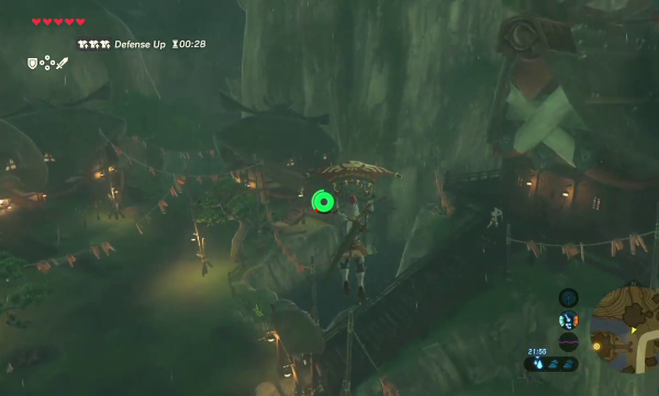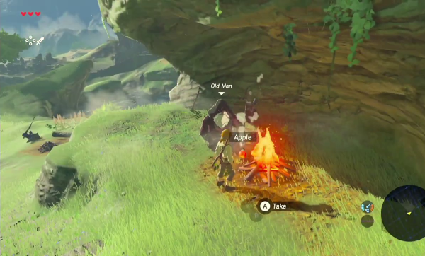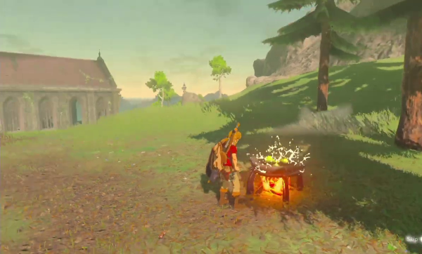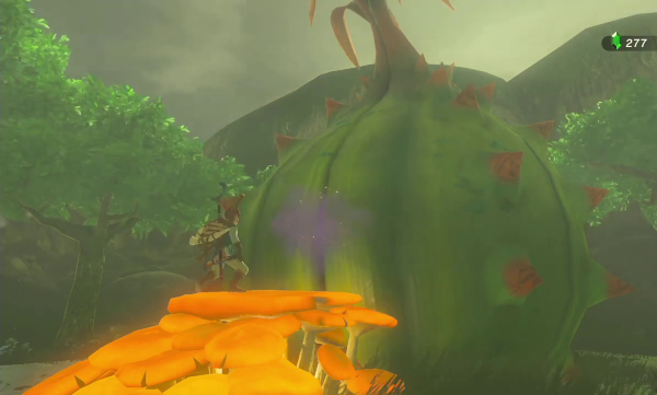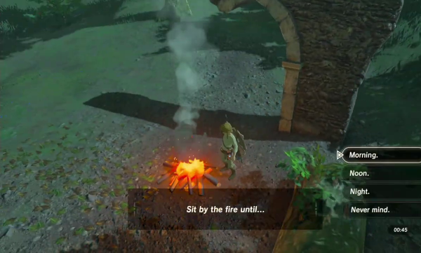 Le jeu n'a du reste pas été avare en nombre de recettes différentes : des chutneys de fruits, des currys, de la viande ou du poisson préparé de multiples façons, des brochettes de champignons..., il y a plus d'une centaine de façons distinctes de cuisiner dans BotW. Même si le changement est surtout cosmétique, et même si l'on apprend rapidement à préparer les plats les plus utiles (typiquement, ceux qui vous redonnent toute votre vie et des cœurs supplémentaires, ou qui augmentent beaucoup votre attaque pendant plusieurs dizaines de minutes), on se surprend à profiter dès que possible des arrêts-buffets. Chaque relais aux chevaux et chaque village proposent des marmites, sans parler de celles que l'on trouve dans la nature, et on peut les utiliser librement à la condition qu'un feu y est allumé, ce à quoi on peut remédier très facilement. Ce choix de jeu reconditionne assez notre exploration dans la mesure où l'on ne peut plus, comme jadis, se lancer tête baissée vers notre destination sans y réfléchir. Il faut à présent se préparer, concocter des petits plats ou des potions nous permettant de résister au froid mordant ou à la chaleur désertique, sans avoir l'assurance que cela sera effectivement suffisant. Couplé avec l'absence d'objectifs précis ou de cartes détaillées, ce système fait de nous de véritables aventuriers, partant à la conquête d'une terre sauvage sans que l'on ne puisse savoir par avance où nous pourrons camper.