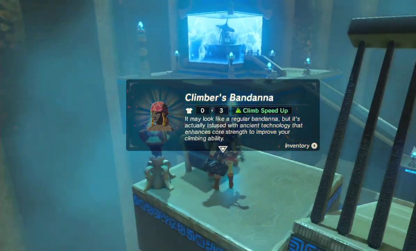 Jamais la tenue de Link n'a été aussi variée. Certains accessoires ne sont disponibles que dans les Sanctuaires, comme ce bandana qui accélère notablement notre vitesse d'escalade.