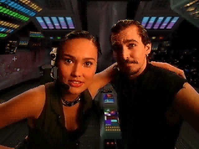 La version 3DO s'étale sur 4 CD, contrairement aux versions micros qui n'en occupent que 3. Les raisons d'une telle conversion sont évidentes : ce type de jeu correspond parfaitement à la machine ciblée et de plus, les outils de programmation de celle-ci ne sont autres que des Macintosh gonflés à bloc, ce qui nous fait deux adaptations pour le prix d'une. Vive le capitalisme. La technique, c'est...Fantastique. Comment peut-on autrement qualifier le procédé utilisé pour incruster les acteurs dans un jeu vidéo ? Ce système est pourtant basé sur une formule des plus simples : comme vous le savez probablement, le magnifique fond bleu que vous apercevez sur une des photos illustrant cet article se trouve être invisible pour les caméras. Les acteurs sont donc filmés devant cet arrière-plan des plus sobres et sont ensuite incrustés dans des décors créés par ordinateur. Le tout est ensuite retraité en une image, sur laquelle viennent se greffer les multiples effets spéciaux. Cette méthode possède évidemment certains avantages pour l'industrie vidéoludique : les scénaristes peuvent laisser libre cours à leur imagination pour créer des environnements particulièrement soignés, les contraintes « physiques » pouvant être mises de côté. Le tournage se révèle être beaucoup moins long, l'inexistence de décors et le nombre de comédiens généralement restreint favorisant ce dernier point. Dans le cas qui nous préoccupe, le casting n'est, pour une fois, pas des plus décevants : Tia Carrere, bien connue pour ses apparitions dans True Lies, Rising Sun ou encore Wayne's World et Christian Bocher, méconnu dans nos vertes contrées mais grand habitué des séries et téléfilms outre-Atlantique (Freddy's Nightmares, Eden, Greenhorn, First Shot...). Le choix des artistes est, pour ce style de logiciel, particulièrement important, ces derniers exécutant leurs actions sans aucun repère. Le travail n'en est donc que plus délicat. Grâce au gain de temps de cette technique, les deux heures et quelques de vidéo sont tournées en 10 jours par nos deux compères. ![]() ![]()