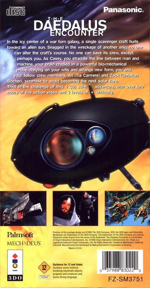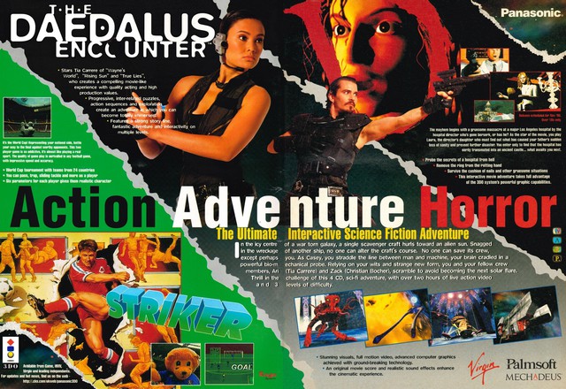 Un accouchement difficile![]() Mechadeus : le nom de ce développeur ne vous dit probablement rien, mais il est pourtant un de ceux à avoir su créer une de ces fameuses exceptions. Après les bons résultats de son Critical Path commercialisé fin 1993 par Mediavision, la société se remet immédiatement à la conception d'un nouveau projet. Cette fois, la surenchère est de mise, le précalculé et les têtes connues étant à l'affiche. Seule ombre au tableau, la faillite de Mediavision qui, suite à une gestion frauduleuse, vient ralentir les opérations. Le travail réalisé par le studio ne restera cependant pas lettre morte, Virgin s'en étant octroyé les droits pour une distribution européenne et américaine sur micros. Sur le coup, le célèbre éditeur américain a eu le nez fin, les gens de Mechadeus maîtrisant particulièrement bien leur sujet. Une version sur les machines 3DO est aussi prévue, son adaptation étant laissée aux bons soins de Palmsoft, filiale de Panasonic, elle-même division de Matsushita Electric Corporation. Le jeu est, après 16 mois de développement, commercialisé en mai 1995 sur PC et Mac, la version console suivant peu après.