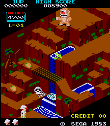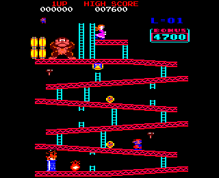 en fait Monster Panic. En parallèle, côté arcade, une autre société (Falcon) développe un bootleg appelé Crazy Kong : c'est principalement le gorille qui est retravaillé et a l'air plus agressif. D'autres clones verront le jour par la suite, comme Konkey Kong ou Donkey King... Et même Sega décide de sortir, pas vraiment un clone, mais une variante de Donkey Kong pour surfer sur la vague du gorille : Congo Bongo.