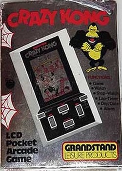Plus rigolo (enfin, pour ceux qui ne se sont pas fait avoir), la société Epoch a visiblement revendu les droits de son jeu Monster Panic à deux sociétés (Gamatronic et Grandstand), qui changent juste le titre en Crazy Kong, rajoutent le dessin d'un gorille sur la boîte, et voilà : le jeu est en vente. Impensable de nos jours ! Enfin, je dis ça, mais si ça se trouve c'est Epoch qui a fait le changement de titre au départ, pas moyen d'avoir l'info. Ce que je peux vous assurer, c'est que le jeu est bien Monster Panic (puisque celui-là, je l'ai toujours à la maison) et qu'il n'a absolument rien à voir avec Donkey Kong !