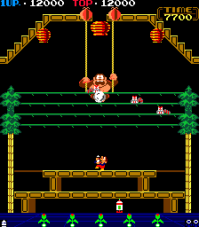 les plantes de sa serre menacées par des insectes. Donkey Kong est bien présent, en haut de l'écran, c'est lui qui secoue les nids des guêpes,