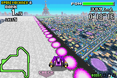 Pendant ce temps, la Nintendo 64 continue sa roule en solo. Les ventes sont plutôt bonnes mais en deçà des espérances, surtout dans l'Archipel, le marché déterminant par excellence. L'extension va alors de report en report. Au cours de l'année 1998, les promesses se suivent et se ressemblent... Dans un premier temps, Nintendo restreint le champ de bataille, la firme ne garantit plus qu'une sortie exclusivement japonaise - elle se réserve tout de même la possibilité d'une sortie mondiale, si le succès est au rendez vous dans l'archipel, mais cela ne sent pas bon du tout ! 1999 : nouveaux reports en cascade, la machine, annoncée dans toutes les fêtes du pixel, n'est finalement présentée à aucun de ces salons. L'année passe, se termine et, miracle, le 11 décembre 1999, l'extension sort bel et bien. Seulement deux jeux à ses côtés : Mario Artist et Kyojin no Doshin (Doshin the Giant). Verdict commercial : c'est un échec... relatif. De toute évidence, le dd64 est sorti trop tard, sans soutien : alors que, deux ans auparavant, elle y croyait dur comme fer, au changement de millénaire, la firme n'a rien fait - ou presque - pour que cette machine se vende. Quelques jeux sortent tout de même au cours de l'année 2000. Trois autres Mario Artist (déclinaisons modernes du fameux Mario Paint de la Super Nintendo), un jeu de Golf, un second Doshin the Giant, Sim City 64 et puis, bien évidemment, F-Zero X Expansion Edition. C'est à la fin de cette même année que Nintendo abandonne officiellement la machine. Quatre Mario Artist et cinq jeux pour une petite année d'existence. Mais allons voir ce que vaut l'extension de la série qui nous intéresse... ![]() Sensations (de richesse) : Une Nintendo 64 japonaise, une cartouche de F-Zero X japonaise (et oui il vous la faut aussi), un DD64 japonais (remarquez, il ne risque pas d'être PAL!), et enfin, le jeu F-Zero X Expansion Edition... Voilà, nous sommes des cyber-bourgeois, heu non pardon, voilà, nous sommes prêt à commencer la course. En fait, deux choix s'offrent à nous : courir ou construire. Commençons par les deux nouvelles coupes. Les douze nouveaux circuits sont tout simplement géniaux, dans la droite lignée de la cartouche N64, la difficulté a même augmenté d'un cran. Maintenant, créons : direction le garage. Et oui, dans cette extension, on peut créer des véhicules : formes, couleurs... Tout y passe. Mais, le vrai joyau du jeu, c'est l'éditeur de niveau. On peut faire absolument tout ce que l'on veut. Essayez de repousser les limites de l'engin : il n'y en a pas. Le meilleur éditeur de circuit au monde... Quel joueur de V-Rally 2 n'a pas passé des heures à construire des circuits tordus, enchaînant les virages, les creux et les bosses, pour finalement transformer les pistes indonésiennes en de véritables montagnes russes multi-buggées ? Ici, avec F-Zero X Expansion Kit, il n'y aura aucun bug, tout est prévu, la folie du joueur fait partie intégrante du concept. Et il faut être drôlement imaginatif pour rivaliser avec les programmeurs de Nintendo. Mais je vous fais confiance. Le jeu sera aussi délirant que vous serez cinglé et brillant architecte. L'interface du programme est super-complète et assez claire. Malheureusement, elle est entièrement en japonais, mais cela ne constitue pas un mur infranchissable pour tous ceux qui ne maîtrisent pas la langue de Son Goku. Enfin, c'est ce que nous disent tous les heureux possesseurs de l'engin. Le petit bijou est hors de prix, hélas. ![]() ![]() Miyamoto ! (nouvelle expression marquant l'étonnement, synonyme de "Mon dieu !") Tout cela donne très envie d'essayer l'expansion F-Zero X du Disk Drive 64 - DD64, pour les intimes. Malheureusement, les intimes sont peu nombreux. Alors justement, il n'y a que deux alternatives : soit nous gagnons à un jeu de la Française des Jeux et nous achètons le kit, finger in ze nose, dollars in ze pocket, soit des petits génies de l'informatique réparent, cette fois encore, une des plus grandes injustices des jeux vidéo : le Dédé ! Hé, Dédé ! Emulez Dédé ! Ou grattez le, c'est selon. 2001 - F-Zero : Maximum Velocity (Gameboy Advance)![]() ![]() Fin Juin 2001 sort en France la toute dernière portable de Nintendo avec un F-Zero dès le lancement. ND-Cube accouche du jeu. C'est même son premier enfant ! Il faut dire que la firme vient d'être créée, c'est une sorte de cocktail commercial qui résulte d'un accord entre Big N et la société de Marketing japonaise : Dentsu Corporation. N + D = ND. Et oui, Nintendo se cache derrière la première initiale de ce nouveau nom. Il ne faudrait pas croire que Maximum Velocity se retrouve en gestation chez de parfaits inconnus. A la tête du projet, on retrouve même quelques pointures de la marque, notamment des habitués de la saga qui décoiffe. Kazunobu Shimizu, directeur du premier F-Zero, dirige ce nouvel opus (il est également responsable du design). C'est aussi le grand retour du compositeur de Big Blue, Mister Naoto Ishida en personne, un musicien dont on avait un peu perdu la trace depuis des années. Il a pu rattraper le temps perdu et laisser libre cours à son imagination en créant quelques unes des nouvelles mélodies - car, autant le dire tout de suite, il n'y a 'que' des musiques 100% inédites. En fait, cet épisode fait un peu peau neuve sur tous les plans : les environnements ont, eux aussi, changé. Pas de Port Town ou de Mute City, mais des nouveaux lieux nommés Sinobazz, Bianca City ou Beacon Port... Ces environnements "nouveaux" n'en demeurent pas moins très typés SNES et proches des décors mythiques des premières versions : ce sont des mondes clones. Autre modification, un peu plus étonnante encore : les quatre véhicules sont différents de ceux des versions 16-bits et ils n'étaient même pas présents dans le flot de 30 bolides que comptait pourtant la version 64-bits (six autres véhicules sont débloquables au cours du je