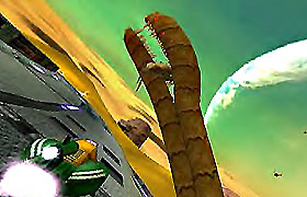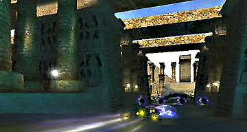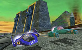 III-b. Le pendant pessimiste. ![]() Et si, plus tard, tout allait plus mal, et même, lâchons le mot : si tout allait moins bien ? F-Zero pense aussi au pire et, comme meilleur preuve, je citerais la course Lightening, qui, contrairement à ce que son nom laisserait présager, est le circuit le plus sombre d'entre tous. Jugez plutôt : Un violent orage éclate, la piste est formée de grilles de métaux rouillées... Et c'est réellement dans un esprit fataliste que la course a été créée. Voici comment Nintendo présentait l'ambiance de ce nouveau circuit peu avant la sortie du jeu NGC : "la couche d'ozone est détériorée par la pollution, l'obscurité est entretenue par des nuages, le climat est de plus en plus imprévisible, les compagnies investissent alors dans de nouveaux dispositifs de production d'énergie". Bref, nous sommes très loin de la sérénité et de l'optimisme béat de tout à l'heure. On retrouve plutôt, en images, toutes les prédictions les plus alarmistes que ces dernières années ont laissé présager aux spécialistes. Lightening en est l'héritière directe et ne laisse aucun doute : dans le coin, ce n'est pas l'éclate. Et dans Fire Field : Cilinder Knot non plus ! Les mêmes grilles (mais qui sont leurs fournisseurs ?) forment cette fois-ci des tuyaux, avec des bosses dangereuses qui nous propulsent en l'air. Les véhicules sursautent et tournoient sans cesse. Il faut toute la concentration du monde pour échapper à la lave qui, juste en dessous, nous menace, et nous menaçait déjà d'ailleurs, il y a six ans, dans la version précédente de course Fire Field (F-Zero X). Une particularité de la série ? Pensez donc, pas du tout, au contraire : encore une ambiance classique que notre jeu évoque... Dans Star Wars : Racer ou bien encore dans Wipeout, la même lave, écarlate, agrémente certains parcours, pas plus joyeux. Dans Forsaken (1998, PSX, N64), Akklaim exploite à fond ce "futurisme-là". Comment le nommer ? Pour se faire comprendre, la meilleure solution reste encore de décrire le jeu : Suite à un accident nucléaire, la Terre a été nommée 'Forsaken' (=Zone abandonnée). Nous chevauchons alors une moto hi-tech, lancée à pleine vitesse dans des dédales de couloirs métalliques pour piller tout ce qu'il reste. Des dizaines de robots tentent de nous barrer la route, mais, rassurez-vous, nos instincts les plus destructeurs prennent le dessus et libèrent la route par la violence. Des robots, des armes, des explosions - tout un programme. ![]() C'est l'Apocalypse ! Le progrès qui nous échappe. Pour l'instant, juché sur la GameCube, Rob, le bricoleur, est bien gentil, docile, mais vous allez voir que bientôt... Il va réclamer un salaire, une prime de risque pour l'altitude, des indemnités en cas d'accident. Rebelles, les robots vont tous nous tuer. C'est aussi ça F-Zero, une ambiance parfois sombre, fataliste, parce l'évolution technique possède son revers à la médaille. Contrairement à la plupart des jeux futuristes, F-Zero ne choisit pas son camp. Et qu'il soit une aide ou une menace, Rob est un robot. En tant que simple décor, il représente le progrès technique. Voilà pourquoi il est là... J'espère que ça vous a plu, au revoir les amis. ... Il représente le progrès ? Le progrès technique !? Ce n'est peut-être pas si sûr, parce que Rob est un très vieux robot. On a vu que le futurisme de F-Zero est plutôt rétro, mais là quand même, Rob est plus que rétro, il est carrément Antique ! Une nouvelle piste, allez, on décortique : Rob s'intègre peut-être dans... III-c. ...Le paradoxe de l'Antiquité futuriste. De légers mouvement des bras, les yeux qui se ferment par intermittence, pas de doute : Le robot tique, il ne comprend pas ! Et on peut se mette à sa place - même si on ne rentre pas dans la boîte de l'Action Set Deluxe de Nintendo - car aucun style, ou presque, n'est plus ancien que l'Art Antique, ou, à plus forte raison, que les décors de la Préhistoire... Et donc intuitivement, rien n'est plus incompatible avec l'idée du futur lointain... ![]() Pourtant, nombreux sont les jeux futuristes montrant des paysages antiques ou primitifs, à l'opposé des deux types de développements industriels que nous venons de voir. Qu'il fusse idéal ou destructeur, au moins, dans la précédente partie, il y avait un développement, ou, du moins, une évolution, un changement - mais là, que voit-on ? Des montagnes de pierres brutes, de grandes zones de sables, de grands espaces inexploités comme dans Sand Ocean (F-Zero GX).Et l'antique est là à chaque épisode. Sur GameBoy Advance, une course s'appelle Empirean Colony et démontre la même absence de développement. Dans l'épisode 64-bits, de grands colosses s'élèvent au milieu de rien. Et dans les circuits Sand Ocean et White Land (toujours N64) des écritures anciennes remplissent des obélisques en or, elles semblent composer des mots dans un alphabet inconnu. Huit années encore plus tôt, et sur Super Nintendo : des dolmens agrémentent déjà le lointain de la course Silence ; des défenses et un gros crâne préhistorique sortent du circuit Death Wind ; et dans le dernier niveau, ce sont de grands bâtiments à porches qui sortent d'une étrange marre de sang, comme autant de Collisées infernaux... Et tout, et tout, et tout... Et ça devient franchement intrigant quand on imagine que tous les jeux futuristes font appel à ce genre de visuels : Dans ExtremeG, les motos filent, notamment, dans une ville ancienne évoquant la civilisation Maya. Dans Quantum RedShift, le récent jeu futuriste de la X-Box développé en partie par la même équipe que Wipeout, une des courses se déroule en Egypte, sans doute la ville la plus antique qui soit. Et ce ne sont que quelques exemples entre mille, c'est du 100% classique, parce que pour être tout à fait honnête, dans Wipeout aussi, l'antique est là, partout même, complètement intégré à l'univers. 