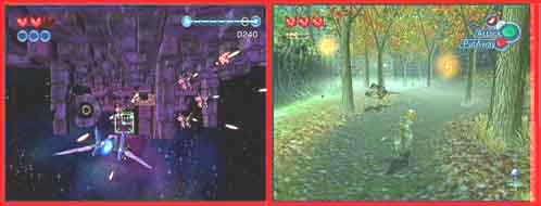 En fait, ce qui définit un genre, cela semble être un mélange de tout ça : Un mix d'ambiance générale, d'interface technique, d'interaction avec les autres éléments à l'écran, de mode de jeu, etc. Aucune caractéristique ne peut, à elle seule, imposer un registre. Je n'ai trouvé qu'une exception (et encore, une exception éventuelle) où une seule caractéristique, en l'occurrence les dessins, peu(ven)t changer le genre d'un jeu. Je pense aux jeux électroniques Lansay (entres autres), il s'agissait de pseudos consoles avec des écrans interchangeables. La trame était toujours la même - une trame pompée sur le Game&Watch Parachute, où il faut rattraper tout ce qui tombe - mais en changeant l'écran, on passait par exemple d'un Sauvetage dans l'espace à un jeu de Sport (en l'occurrence de base-ball)... ![]() Hormis ce cas extrême, un jeu est une accumulation de plusieurs caractéristiques : pour chaque genre, il y a quatre ou cinq éléments caractéristiques. La majorité des jeux empruntent toutes les caractéristiques d'un seul genre. Mais d'autres jeux seront qualifiés d'hybride s'ils empruntent deux ou trois caractéristiques à l'un et deux ou trois caractéristiques à l'autre. D'ailleurs, les exemples de jeux hybrides sont assez nombreux, les fines touches de RPG dans l'aventure sont légions et vice versa; on s'interroge souvent sur la définition d'un RPG pure, d'un RPG-aventure, d'un RPG-action... et c'est alors la bataille entre les puristes qui commence pour tenter de catégoriser les softs incatégorisables. Dans le best of du bizarre, on pourrait tenter un jouissif inventaire des moutons à cinq pattes de lapin et autres femmes à barbes de bouc du patrimoine vidéoludique : Le Mélange des genres... permet parfois de s'éloigner d'un jeu référence et de ne pas chasser sur le même terrain (souvent miné). Diddy Kong Racing (Rare, 1997, N64) est un jeu de karts/avions/bateaux à options bonus, c'est d'ailleurs une des plus sérieuses alternative au jeu référence et inventeur du genre : Mario Kart, bien que le mode multijoueur de DKR ne tienne pas tellement la route. Et c'est justement en cela que ce jeu est une curiosité, mais surtout une alternative intelligente. Entre nous, Mario Kart, c'est quand même quelque chose, ce jeu est plus que respecté, il est carrément idolâtré. Alors quand en plus on développe exclusivement pour une console Nintendo, on ne va pas s'amuser à faire la même chose, ou alors on envoie ses petits karts droit dans le mur. Rare, très habile, chasse alors sur un terrain différent. Ce Mario-Kart-like est principalement constitué d'un mode solo (!) aventure (!!) avec un système de progression dans la plus pure tradition "plates-formes" (!!!). Citons l'aire centrale, élément typique des jeux d'aventure (=le château de Mario64) et les portes bloquées par un compteur de ballons (remplacez ballons par étoiles ou soleils et suivez mon regard). Ajoutons que de façon encore plus atypique pour un jeu de caisses, il faut vaincre parfois des boss animaux géants. Enfin, on croit rêver quand on doit, par cinq fois au cours du jeu, récolter des clefs bien planquées en conduisant son véhicule un peu partout. Ainsi, les pistes sont non seulement des circuits où l'on doit faire exploser le chronomètre mais ce sont aussi des espaces à explorer de fond en comble pour trouver des objets (!!!!). Continuons la comparaison : dans Mario Kart, l'impact des options est démesuré (-ment génial) et on obtient des bonus d'autant plus intéressant que l'on se trouve en queue de peloton. Les derniers balancent la purée, doublent les premiers, pas contents, qui a leur tour obtiennent une options super blessantes ou super boostante, ils repassent devant et ainsi de suite. Dans DKR, les bonus ne sont pas (faussement) aléatoires. Les options, également matérialisés à l'écran par des ballons, annoncent la couleur (au propre comme au figuré) bien avant qu'on les récolte, histoire qu'on puisse les choisir. La main de "dieu l'ordinateur" ne donne pas un coup de pouce aux derniers - et un coup de poing aux premiers. En plus, les armes ont moins d'impact que dans Mario Kart. Ce qui est moins poilant mais accentue également l'aspect conduite pure. Et voilà qui est très congruent à la prédominance du mode solo de ce Mario-Kart-like pas si "like Mario Kart" que ça. CQFD. Vive Diddy Kong Racing, le premier jeu de course/aventure ! A chacun son genre et les coups vaches à la Mario-Kart seront bien gardés. Le mélange des genres... la réunion entre la continuité d'une saga et le renouvellement de la série.Bien qu'il n'y ait que très peu d'épisodes, Metroid, excellente saga de jeux d'action/aventure, demeure une des licences les plus adulées de l'escarcelle Nintendo. Pour l'épisode GameCube, il faut justifier les quelques 480 Mhz bien tassés de la console, et donc faire considérablement évoluer une saga restée en suspend depuis l'ère des 16-bits (hormis un épisode GameBoy Advance développé simultanément). Fini la 2D, dans Metroïd Prime (Retro Studios, 2003, GameCube), nous avons une vue à la première personne. Nos yeux et ceux de Samus ne forment qu'un (enfin deux), comme dans n'importe quel FPS. Révolution ? Il n'en est rien. Metroid Prime n'est pas un FPS, on tue beaucoup moins, et surtout beaucoup moins systématiquement que dans les FPS. Le jeu est même resté à tous les autres points de vue (que celui du point de vue) un soft d'action/aventure avec : Beaucoup d'exploration dans des niveaux dédaléens, des missions très variées à remplir... et avec même des passages de pures plates-formes ! Mais la vue subjective donne un relief particulier à ce genre de jeu. L'ambiance, angoissante comme rarement, est presque palpable, physique, en relation directe avec notre estomac. Ainsi, en succédant à l'équipe nippone du respecté Gunpeï Yokoi (le génial créateur de la GameBoy, malheureusement décédé en