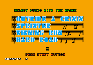 Ensuite, quiconque à joué à Out Run se souvient certainement de ses musiques sélectionnables sur l’autoradio de la Ferrari Testarossa. Bien qu’il soit proposé sur un écran plus aride, ce choix existe aussi dans Super Hang-On. Loin de n’être qu’un détail, cette nouveauté apporte un plus non négligeable. La présentation en général est capitale dans les jeux d’arcade, et la bande son en particulier joue un rôle majeur dans l’attractivité d’une borne. Le joueur mélomane aura ici de quoi se satisfaire avec des bruitages nettement améliorés et quatre musiques d’accompagnement entraînantes qui n’ont pas grand-chose à envier aux classiques d’Out Run. Rien d'étonnant à cela, elles sont toujours l'oeuvre du talentueux Hiroshi Miyauchi.