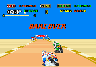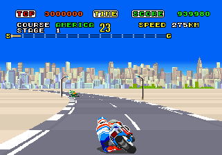 Il ne s’écoulera que deux petites années avant la sortie de la véritable suite de Hang-On : Super Hang-On. À vrai dire, personne n’aura vu passer les deux années qui séparent les deux titres. Le vide temporel aura été parfaitement comblé par un mastodonte de l’arcade, un des plus grands classiques de Sega développé, lui aussi, par Yu Suzuki : Out Run. Une bonne recette sur quatre roues l’étant tout autant sur deux, Out Run va considérablement influencer l’évolution de la série Hang-On et la bonifier en trois points.