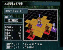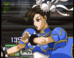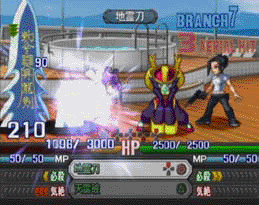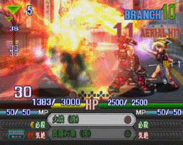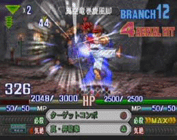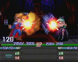 DES COMBOS DANS UN S-RPG ??!Alors, comment qu'on joue? Sur une carte en 3D tout d'abord, qu'on peut zoomer et faire tourner, et où vos troupes affrontent les unités ennemies. Lors des combats, on passe en 2D, dans une vue « à la jeu de baston » (j'y reviendrai plus bas). L'ordre d'action s'inspire plus de Shining Force que de Super Robot Taisen, à savoir qu'il n'y a pas un tour pour vous et un tour pour l'ordinateur, mais que toutes les unités sont mélangées. Chaque action (se déplacer, attaquer, se défendre, utiliser un objet ou une magie, attendre, ouvrir un coffre [quand il y en a un à proximité évidemment], etc.) vaut un certain nombre de points d'AP (Active Points). Le nombre maximum d'AP est de 10 et se régénère au fur et à mesure (parer une attaque permet de regagner des points, alors qu'esquiver ou contre-attaquer vous en fait perdre. En d'autres termes, si vous passez votre temps à esquiver, certes vous ne perdrez pas de vie, mais vous n'aurez jamais l'occasion d'attaquer.) ![]() ![]() ![]() ![]() Lorsque certaines unités se trouvent à proximité d'un adversaire et qu'elles disposent de suffisamment de MP, elles peuvent déclencher une attaque combinée, appelée Multiple Assault (quelques rares unités en sont également capables seules). Les exemples sont fort nombreux mais on peut citer le Captain Storm (Captain Commando, Hoover & Genity, Sho & Guy), le Souryuken (Ryu, Ken), le Iseishiyageki (Lei Lei & Fon Lin, Bruce & Regina), ou encore le Double Heat Body (Arthur, Gilgameth & Kai). Ces Multiple Assault permettent souvent de frapper deux, voire trois unités simultanément. Toutefois, si elles en jettent visuellement, elles ne sont généralement pas très puissantes. Elles sont toutes listées dans les menus aux inter-missions, donc on ne risque pas d'en louper. Pendant que j'y suis, j'ouvre une parenthèse sur ces menus. On peut y trouver un tutorial extrêmement bien fait, images à l'appui, et visionnable n'importe quand sauf durant une mission (hormis la toute première). On dispose aussi d'un mode Training pour essayer ses combos entre deux missions en toute tranquillité ! ![]() ![]() ![]() ![]() ![]() Venons-en à ce qui fait la particularité du soft, à savoir les scènes de combat. On va commencer par la défense, car très rapide à expliquer. Les possibilités de contre-attaque ou d'esquive nécessitant des AP ou des SP (barre de Super), vous choisirez le plus souvent de parer. Il faudra alors reproduire sur le pad directionnel une séquence de 4 à 10 mouvements assez rapidement. En cas d'échec, vous perdrez plus que prévu. ![]() ![]() ![]() ![]() À propos de la puissance des personnages, elle est assez équilibrée, bien qu'en fonction de vos upgrades vous puissiez clairement en privilégier certains. Néanmoins, Ryu, Jin, Ken, Captain Commando, Sho & Guy, et KOS-MOS me semblent être les plus forts à la base. Avec un peu d'upgrade, Chun Li, Kagekiyo, Valkyrie, Demitri, et Morrigan peuvent atteindre le même niveau (en utilisant systématiquement Chun Li contre les Boss, j'avais toujours 2 à 3 niveaux de plus). Toutefois, contrairement à beaucoup de S-RPG, vous ne traînez aucun « boulet » (sauf peut-être Shion & M.O.M.O, avant tout destinées à remettre de la vie). En arrivant à la dernière mission, tous vos personnages devraient avoir un niveau acceptable. Et là, je tire mon chapeau à Namco. Un des – rares – défauts de Super Robot Taisen ou Shining Force, c'est qu'il est impossible de sortir toutes ses unités en même temps, et que certaines se retrouvent au garage, sans possibilité de grimper de niveau. Ici, au fil du scénario, les personnages se séparent très souvent en 2 ou 3 groupes, ce qui permet de jouer avec tous tout au long du jeu ! C'est vraiment quelque chose de très appréciable. ![]() ![]() ![]() ![]() UN JEU VARIÉ, BEAU, MAIS LONG !!!J'espère que vous n'êtes pas pressé, parce que finir ce jeu demande un temps conséquent. Le soft compte une cinquantaine de missions, d'environ 1h30 chacune (1h pour les premières, 2h pour les dernières). Il m'a fallu 85 heures pour le boucler, sachant que je n'ai pas eu un seul Game Over. Même en zappant les scènes de dialogue (ce qui serait fort dommage), on doit en avoir au moins pour 60 heures. Je vous rassure, on ne se lasse pas pour autant (contrairement au beaucoup trop long Super Robot Taisen Impact et ses 101 missions !) Si le scénario ne casse pas des briques, la mise en scène est vraiment réussie, et le moins qu'on puisse dire, c'est qu'on voyage beaucoup, que ce soit dans le temps ou l'espace (l'Au-delà est à mon sens le plus passionnant des mondes). Les décors sont jolis et très variés, souvent en rapport avec les diverses licences utilisées dans le jeu (le château de Demitri ou celui de Makaimura, le vaisseau du Boss de Captain Commando, la fête foraine de Klonoa Heroes, etc.). Les scènes de combat sont dessinées dans une 2D correcte, sans plus. Les personnages sont représentés en semi-SD, ce qui fait un peu bâtard (mais c'est toujours mieux que les SD purs et durs !), et ENFIN Morrigan gagne un nouveau sprite! (je rappelle que le sprite de Morrigan n'a quasiment pas évolué du premier épisode de Vampire à Capcom VS Snk 2, alors que 8 ans les séparent !) En revanche, les effets spéciaux liés aux coups spéciaux sont souvent magnifiques. Les arrières-plans et personnages lors des scènes de dialogue sont eux vraiment beaux, tout comme les artworks officiels. ![]() ![]() ![]() ![]() ![]() ![]() Quant aux musiques, c'est un vrai régal pour les oreilles, un des points forts du jeu. On retrouve avec une joie sans nom les thèmes qui ont bercé nos années de jeunes joueurs (je parle pour moi!), tels ceux du premier stage de Makaimura, du 5ème stage de Final Fight, de Ryu, Ken, ou Chun Li... D'ailleurs, toujours dans la série « traitement de faveur de Street Fighter », quasiment tous les personnages ont droit à leur propre t