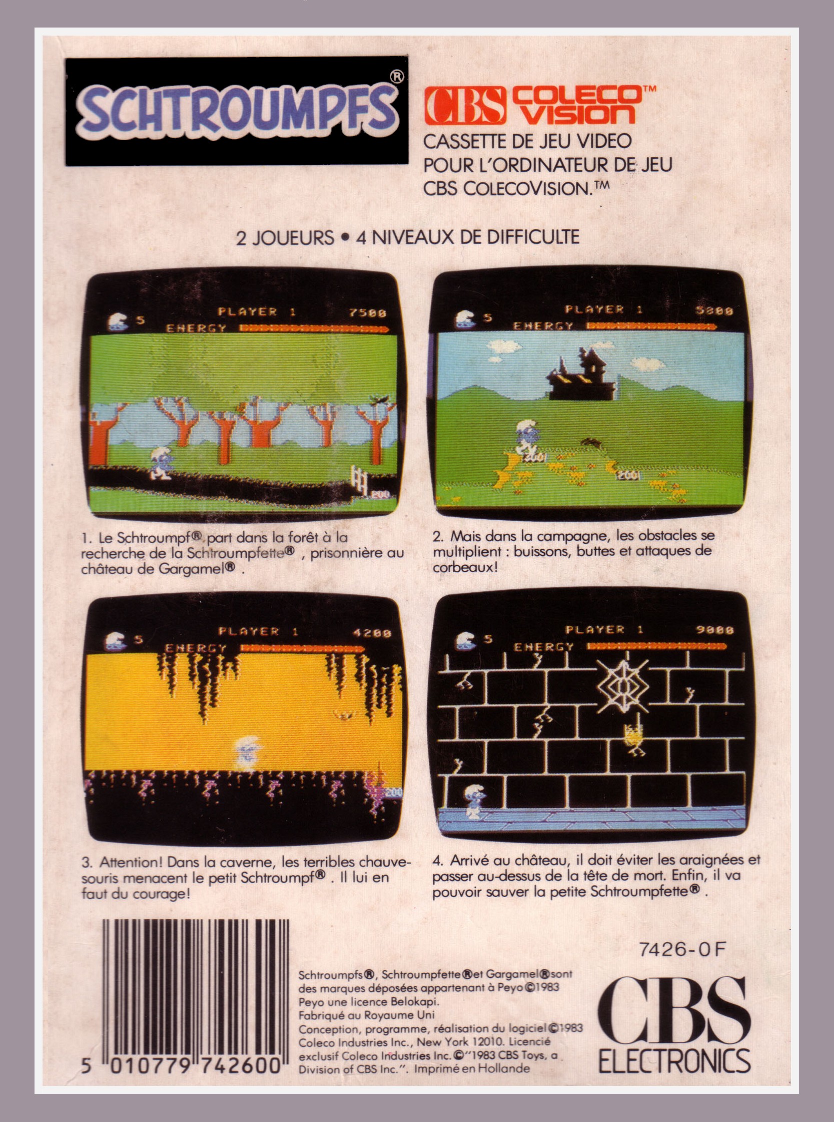 Enfin, je vais maintenant aller dans le vif du sujet : les Schtroumpfs, le jeu sur Coleco. ![]()