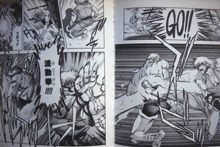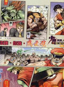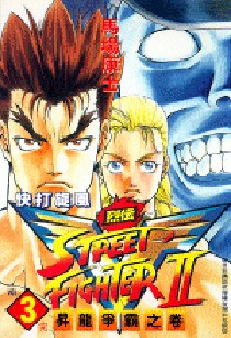 STREET FIGHTER III 3d Strike![]() Année inconnue (sans doute 2000), 28 volumes. Cette fois, le titre est exact puisque le scénario ne met effectivement en scène que les persos du III 3d Strike. Encore une fois, le héros est Ken, mais Gill occupe une place très importante. Ca se lit (enfin regarde pour ma part) plus agréablement que le New Generation, peut-être parce qu'il n'y a que 28 volumes, qui plus est se résumant en gros à une suite de combats, c'est donc nettement plus digeste. D'autant plus que c'est largement moins morbide ! Ca se finit même plutôt bien. ![]() STREET FIGHTER ZERO II![]() 1996, nombre de volumes inconnu (peut-être 2 recueils ?). De loin la bd la plus proche du jeu, hélas les visages sont parfois une véritable horreur (mon Dieu, ces mentons...). Il ne s'agit pas véritablement d'une histoire à suivre mais plutôt de courts chapitres consacrés à divers personnages. Je pense qu'il s'agit de la meilleure adaptation chinoise parmi celles que j'ai pu voir. Les combats ne sont pas "abusé à donf" comme d'ordinaire, et la psychologie des persos semble avoir été relativement respectée. ![]() ![]() STREET FIGHTER ZERO 3![]() Année inconnue (1999 ?), nombre de volumes également. Jamais vu. Je ne possède que quelques scans mais ça m'a l'air dans la droite lignée de ce qui se fait habituellement sur Street dans l'Empire du Milieu... ![]() ![]() LES MANGAOn attaque le gros de l'article, vu qu'il existe une bonne soixantaine de manga (et 7 romans) sur Street Fighter... Et je ne compte même pas ceux de type Capcom VS Snk ou Capcom Comics Anthology ! Rassurez-vous, je ne les passerai pas tous en détail et ce pour une raison bien simple : la moitié sont des recueils de gags en 4 cases, et une quinzaine d'autres des recueils de courtes histoires (sérieuses ou plus souvent comiques), ou le très bon peut côtoyer le véritablement immonde, le second étant hélas bien plus fréquent que le premier... Ce type de recueil compile généralement des histoires tirées de divers dôjinshi (fanzines, donc des manga amateurs) d'auteurs différents. Si c'est l'occasion pour l'éditeur de ne pas avoir à beaucoup payer les dessinateurs (les fanzineux étant trop heureux de se voir édités dans le commerce), c'est aussi pour le lecteur une demi-arnaque (on achète parfois pour seulement UNE bonne histoire de tout le bouquin...). Pour faire passer la pilule, on débauche souvent un mangaka professionnel qui relèvera un peu le niveau... STREET FIGHTER II RYU (3 volumes, Masaomi Kanzaki)![]() ![]() ![]() Ce manga est remarquable (dans le sens de "à remarquer") à plus d'un titre.
