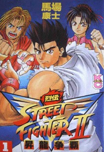 Vu qu'à l'époque la storyline du jeu n'était pas super-développée, l'auteur a pris certaines libertés. L'histoire se déroule sur l'ile de Shad, sorte de mégalopole sans foi ni loi sur laquelle règne Vega, et où se retrouvent des combattants du monde entier pour participer au tournoi Street Fighter. Si on excepte ce détail, et le fait que Chun Li en pince pour Ryu qui de toutes façons est un peu trop extraverti par rapport au "vrai" Ryu du jeu, le manga est assez respectueux du soft. On notera que certains éléments du scénario seront repris pour le film d'animation (comme le lavage de cerveau de Ken par Vega, principe qui est promis à un bel avenir ...). Graphiquement c'est classique mais efficace ! Très dynamique et les combats sont très bien mis en scène, vraiment plaisant à regarder ! Alors que les deux premiers tomes constituent une histoire unique, le troisième se situe quelques mois après et propose une ambiance assez différente. Le but de ce volume était d'essayer d'expliquer le concept du "double" du personnage. Dans Street Fighter II, deux joueurs ne pouvaient pas utiliser le même perso, il faudra attendre le II Dash pour cela. Et bien Kanzaki a essayé de trouver une raison scénaristique à cela... Autant dire que ça ne tient pas debout, même si les combats sont toujours aussi chouettes. Ce manga est ensuite sorti aux Etats-Unis, dans une étrange version : les pages sont dans le sens de lecture occidental mais pas les cases ! (et donc les bulles posent parfois problème quand deux persos discutent dans la même case...) Je ne sais pas ce qui a pris l'éditeur mais ça casse le découpage original voulu par l'auteur... De plus, c'est colorisé pas beau (ça fait assez sale). Enfin c'est censuré (en VO, Chun Li se fait déchirer une partie de son costume par Balrog, et bien ce détail a été corrigé en américain...). Dernière chose : le 3eme volume n'a jamais été traduit. Il s'agit de cette version que nous avons eu en France. Toutefois, le manga ressort cette année aux USA en version d'origine et non-censurée ; peut-être que la France aura la chance d'en bénéficier ? Une très bonne adaptation donc. C'est d'ailleurs ce manga que Capcom a choisi de rééditer en format Deluxe pour les 15 ans de la série. ![]() ![]() STREET FIGHTER II V REDDEN (3 volumes, Yasushi Baba)![]() ![]() ![]() Le manga tiré de la série TV tirée du jeu... Mais sans grand rapport en fait. Certes, le design reprend celui de la série (et encore, pas pour tous les protagonistes !) mais ça s'arrête là. Considérez que c'est un manga "original" mais dont les persos ont la tête de ceux de Street Fighter II V... L'auteur part dans un mélange de science-fiction et de combats dantesques à la DBZ. Nos héros affrontent des dinosaures, Shadoloo possède une force de frappe nucléaire supérieure à celles des USA et de la Russie réunis, Honda (méchant) est cybernétisé, Guile détruit en plein vol des avions à coups de Somersault Kick, le gros méchant de l'histoire fait penser à un mélange entre Gill (Street Fighter III) et Cell (DBZ)... Mais. C'est très bien ficelé dans l'ensemble, on se prend vraiment au jeu. A l'instar de la version Kanzaki, les combats sont superbes ! Point noir : ces derniers sont parfois un peu trop violents, limite gore. Autre reproche : Baba ne sait pas dessiner les visages féminins, souvent assez moches. Ce manga est devenu plutôt rare et cote assez cher. Mais si vous avez l'occasion de tomber dessus, n'hésitez pas même si, je me répète, ça ne ressemble pas vraiment à du Street... L'autre reproche que je ferai, c'est qu'on voit très peu Ken et Chun Li, l'histoire est surtout centrée sur Ryu et dans une moindre mesure Guile. ![]() STREET FIGHTER II MOVIE (Takayuki Sakai) - STREET FIGHTER II V (2 volumes, Takayuki Sakai)![]() ![]() Le film et la série en manga... Ca colle tellement aux originaux que c'en est ennuyeux, en plus ce n'est pas super bien dessiné (aucun rapport avec les couvertures !). On passe. SUPER STREET FIGHTER II X GAIDEN (Mami Itoh)![]() Beau. Superbe même. Une des meilleurs adaptations qui soient. Mami Itoh nous signe ici un petit chef-d'oeuvre. Il ne s'agit pas d'une histoire à suivre mais de huit mini-histoires, chacune consacrée à un personnage en particulier. La mangaka réussit à respecter l'univers du jeu tout en nous proposant des scenarii réussis et parfois très originaux. Mais ce ne serait rien sans le graphisme, vraiment excellent ! Itoh est faite pour dessiner du Street, c'est une évidence. Malheureusement, seul le 1er volume est sorti, il n'y a jamais eu de numéro 2 alors que les histoires étaient déjà prêtes. Néanmoins, ô joie, l'intégrale a été rééditée en 2007 sous forme de deux dôjinshi. Bon, c'est pas évident à dénicher j'en conviens, mais ce manga ne l'est plus non plus de toutes façons... ![]() ![]() STREET FIGHTER ZERO - SAKURA GANBARU - RYU FINAL (2 volumes de chaque, Masahiko Nakahira)![]() ![]() ![]() ![]() ![]() Les versions Kanzaki et Itoh sont très bonnes soit. Mais LE mangaka de Street c'est lui : Masahiko Nakahira. Auteur d'une trilogie en 6 volumes (3 histoires en 2 volumes chacune), le monsieur a su comprendre et tirer toute la quintessence de Street Fighter, particulièrement sur la 3eme partie. La première est avant tout concentrée sur Street Fighter Zero (le 1er), et la lutte intérieure de Ryu face au "satsui no hadô" ("Evil Ryu" pour les anglophones...) La seconde est essentiellement consacrée à Sakura, qui va voyager à travers le monde, et de Karin. Seulement voilà, ce n'est pas Capcom qui a crée le personnage de Karin, c'est Nakahira dans le présent manga! Capcom a ENSUITE intégré cette dernière au jeu vidéo ! Quant à la dernière, dessinée plusieurs années plus tard, elle se situe à l'époque Street Fighter III 2d Impact, et conclut la quête de Ryu de manière magistrale. Je n'aime pas l'ambiance de Street Fighter III (le j