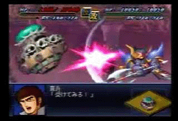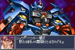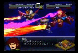 Une autre nouveauté, c'est le système des combos (encore un point commun avec Street Fighter). Un robot peut, avec une même attaque, toucher 2, 3, ou 4 ennemis disposés sur la même ligne (horizontale ou verticale). Enfin, il y a un mode de jeu spécial, entre les missions (mais facultatif, et auquel on peut jouer dans le désordre et au moment voulu, sauf durant une mission, cela va sans dire). Dans le principe, c'est la même chose que le mode Expert des Street Fighter EX : on vous demande de remplir certaines conditions bien précises. Par exemple, vous avez droit à 3 robots et vous devez tuer 4 ennemis en un round... Il existe à chaque fois UNE et UNE SEULE possibilité de finir ce stage-bonus. Si vous réussissez, vous gagnerez des objets pour booster vos robots ainsi qu'un joli pécule. Le tout donne un peu de sang neuf, ce qui n'est pas déplaisant ! SRW D n'a qu'un gros problème : sa difficulté... MON DIEU ! Les 10-15 dernières missions sont MONSTRUEUSES ! Et ceci, même en étant boosté à fond... Mention spéciale pour le dernier stage, où les déplacements sur la carte ralentissent tellement il y a d'ennemis à l'écran ! Du jamais-vu ! Quant au « mode expert » des inter-missions, si les premières cartes sont accessibles, ça devient très vite l'enfer. En toute honnêteté, pour la majorité d'entre elles, j'ai consulté des solutions sur le net, sinon je n'y serai jamais parvenu. C'est sans doute le meilleur volet GBA, malgré l'épineux problème de la difficulté, qui rebutera les débutants.