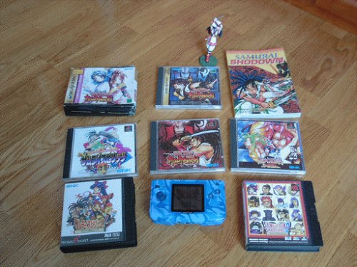 Plus de dix ans après le début de la saga, l'actualité de la série Samurai Shodown n'aura jamais été aussi soutenue : alors que Samurai Spirits VSpecial vient de sortir, et clôt en beauté la logithèque de la prestigieuse NeoGeo, un nouvel épisode est plus ou moins annoncé sur Atomiswave, la machine de Sammy Sega qui semble accueillir les orphelins de la NeoGeo, telle la série King of Fighters. Sinon, il est toujours possible de se rabattre sur d'autres supports : un animé plutôt bien réalisé est disponible en français et en VHS, qui se fonde plus ou moins sur les premiers évènements d'Amakusa. Chose surprenante, on y voit Ukyo dans les scènes qui défilent pendant les crédits, alors qu'il n'apparaît pas une seule fois pendant l'animé. Nakoruru possède, en plus de son propre jeu, un animé qui lui est dédié, et qui n'est cette fois traduit que sous la forme de fansub. ![]() ![]() ![]() Un manga a également été réalisé, aussi agréable à lire. Sans compter les collections de figurines, art book, et autres témoignages d'une série profonde et magique, qui plonge dès les premières secondes le joueur dans une autre époque, sur un autre continent. Une série dont on tombe rapidement amoureux, tant elle a apporté au genre, et dont elle se démarquer si facilement. Et pour les plus accros, il est même possible de se faire plumer par nos valeureux héros japonais, grâce à cette superbe machine Pachinko sur le thème de Samurai Shodown. Des animations sont même proposées sur un écran lors d'évènements divers. Merci qui ? Merci Aruze ! ![]() Enfin, comme beaucoup de séries à succès au Japon, Samurai Shodown est vite devenu une source de ‘cosplay' (‘costume playing', ou comment se fringuer comme son idole virtuelle). Samurai Shodown a été également largement adapté, avec plus ou moins de bonheur, sur les consoles de leur époque ; de qualité généralement inférieure à l'original, ces versions présentent tout de même l'avantage d'être financièrement abordables. ![]() Et pour finir, voici la chronologie des épisodes :