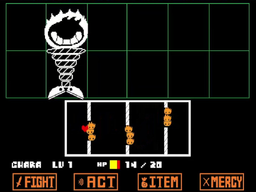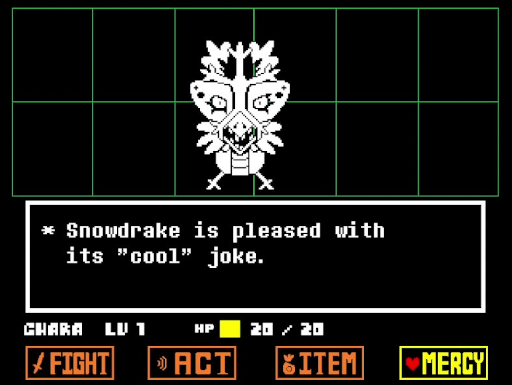 C'est cependant là que le plaisir ludique d'Undertale est définitivement le plus fort, bien plus que de chercher le combat et d'abréger les rencontres. Il faut ainsi voir l'intelligence des patterns des attaques des montres, qui sont toujours en accord avec leur identité et leur personnalité et qui peuvent être très stimulantes à éviter. Les grenouilles chassent des mouches, les squelettes utilisent des os, les fantômes dépressifs remplissent la zone de combat de leurs larmes.