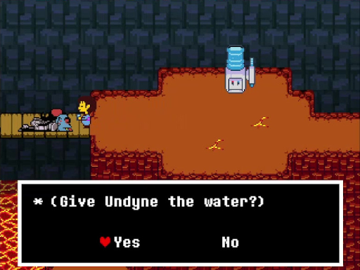 Car là où Undertale tire absolument son épingle du jeu, et d'une façon prodigieuse par ailleurs, c'est que toutes vos décisions, que tous vos gestes, ont des conséquences dans la partie. On a déjà parlé du choix d'épargner ou de tuer les monstres, qui est sans doute la décision le plus structurante de la partie et qui va jusqu'à influencer les PNJ que vous rencontrerez, voire les zones que vous traverserez. Mais même les options les plus innocentes comme sauvegarder, consommer un objet, s'équiper d'un objet de défense ou d'une arme ; observer un élément du décor, évoquer un sujet de discussion avec un marchand ; résoudre ou non un puzzle ; tout cela reviendra, tôt ou tard, influencer votre partie tant et si bien que deux parcours consécutifs du jeu ne sont jamais strictement identiques.