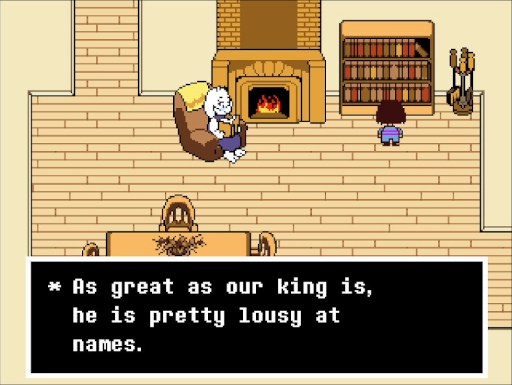 Qu'Asgore soit mauvais avec les noms est une de ces « running jokes » qui traversent le jeu de bout en bout, et elle récompense, comme souvent, notre attention.