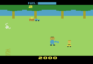 Lorsque Laurie a le malheur de se faire attraper par Michael Myers, son corps décapité titube sur quelques mètres en répandant des petites gerbes de sang ; les mômes ont droit à un traitement similaire : sans être traumatisant (dieu merci, les graphismes VCS nous protègent de la violence ultra-réaliste), le spectacle est assez inhabituel ; à ma connaissance, Halloween est le premier titre dans lequel le joueur peut se trouver confronté au massacre de gastronomes en culotte courte. Heureusement que « Familles de France » est apparu sur terre pour mettre fin à de telles dérives odieuses...