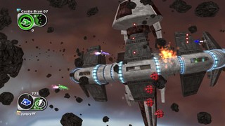Wing Commander ArenaPrix : 800 pts (9,30€) - Date de sortie : 25 juillet 2007 Développeur : EA Canada Marquant l'arrivée du plus gros éditeur au monde, EA, sur le XBLA, Wing Commander Arena a été le premier jeu Live-Arcade jouable en ligne à 16, sans pour autant en profiter pour exiger le tarif maximum, voilà un argument de poids. Malheureusement il souffre de deux handicaps majeurs : premièrement le jeu n'a pas grand chose à voir avec la série de hits sur PC qui lui donne son nom. Le scénario est une peau de chagrin (et c'est pas du Balzac), il n'y a pas de cinématiques, et le vaisseau qu'on dirige est vu de l'extérieur, de manière éloignée, avec un système d'armement/bouclier conçu à la manière des shoot'em ups plutôt qu'à celle des simulations de combat spatial. Deuxièmement, et c'est là que les choses coincent principalement, le gameplay n'est pas suffisamment percutant, et l'intérêt des parties en multi s'en ressent malgré un système de matckmaking assez complet. On s'ennuie vite devant ces batailles molassonnes, et les missions solo ne parviennent pas à maintenir l'intérêt.