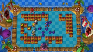 Bomberman Live!Prix : 800 pts (9,30€) - Date de sortie : 18 juillet 2007 Développeur : Backbone Entertainment "Tu l'as voulu, tu l'as eu". Voilà comment on pourrait résumer l'arrivée de Bomberman sur le Live Arcade. Longtemps espéré par les fans (dont les plus impatients ont même été jusqu'à faire l'acquisition du très dispensable Bomberman Act Zero en guise de produit de substitution), le poseur de bombes le plus mignon de la galaxie nous revient dans une version exclusive entièrement orientée multi-joueurs. Jouable jusqu'à 8 contre l'ordinateur, ou contre des humains en local et bien entendu sur le Live, le principe n'a pas vraiment changé depuis la version MSX de 1983 : on pose des bombes pour éliminer tous ses adversaires, tout en profitant d'une orgie de bonus à la disposition aléatoire (bombes plus puissants, plus nombreuses, personnage plus rapide, possibilité de pousser les bombes une fois posées, etc.). Quelques succès sympa, achèveront de convaincre les plus indécis. Petit bémol toutefois, il faut bien avouer que si Bomberman Live est un jeu XBLA qui propose enfin de jouer à plus de quatre, en revanche le jeu à huit devient vite fouillis et l'issue des parties est assez aléatoire pour peu que l'on ait activé trop de bonus différents, d'autant que quelques bugs et autres phénomènes de lag se font parfois remarquer. Le jeu n'en demeure pas moins une valeur sûre et redevient irréprochage si on joue à quatre et que l'on personnalise le nombre de bonus différents selon le niveau des joueurs présents.