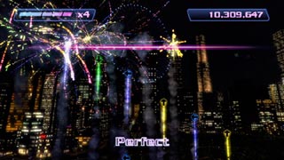 Boom Boom RocketPrix : 800 pts (9,30€) - Date de sortie : 11 avril 2007 Développeur : Bizarre Creations Boom Boom Rocket est le premier jeu de rythme du XBLA. S'inspirant des Dance Dance Revolution et autres QTE musicaux, le jeu consiste à presser la bonne touche au bon moment, en rythme avec la musique. Une jauge se remplit au fur et à mesure que l'on enchaîne les combos mais se vide encore plus vite si l'on commet une erreur. Une fois pleine, le joueur est libre de l'activer quand il le souhaite, multipliant ainsi son score par 16, et ce jusqu'à ce que la jauge se vide ou qu'il rate un combo. les dix musiques sont toutes des remixes tantôt funk, disco ou électro de musiques classiques célèbres. Graphiquement, Boom Boom Rocket mise avant tout sur les effets pyrotechniques générés par le joueur lui-même : chaque note réussie déclenche un feu d'artifice, d'importance et d'esthétique variable. Plus le joueur s'approche du sans faute, plus le feu d'artifice devient conséquent et, de fait, les séquences moins lisibles, l'emploi de la jauge étant un compromis à trouver entre faire un score important ou privilégier la lisibilité au détriment des points accumulés. Côté modes de jeux, on a le solo classique avec trois niveaux de difficulté, le mode endurance où l'on joue un même morceau en boucle sur un rythme de plus en plus soutenu, un mode libre permettant de s'entraîner et un mode spectateur qui permet de jouer ses propres musiques. Un mode versus est aussi disponible, mais hors ligne seulement.