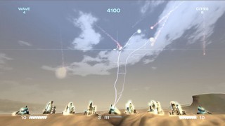 Missile CommandPrix : 400 pts (4,65€) - Date de sortie : 4 juillet 2007 Développeur : Stainless Games / Atari Encore un classique de l'arcade qui se voit adapté sur la plate-forme virtuelle de microsoft. Initialement sorti en 1980, le jeu vous propose de résister à un bombardement en détruisant les obus ennemis avant qu'ils n'atteignent la ville. Pour se faire, vous avez trois canons fixes situés à gauche, au centre, et à droite de l'écran (qui tirent chacun avec un bouton différent de la manette) et un curseur qui fait office de cible. La difficulté réside dans le nombre très réduit de missiles à disposition, ainsi que le délais entre le moment où vous faites feu, et celui où le missile atteint son but et explose. Il faudra donc prévoir effcacement les trajectoires. Contrairement aux habitudes, cette version propose aussi un mode totalement relifté assez sympa, même si curieusement, la version moderne peut paraitre un peu déstabilisante au début, car les missiles sont remplacés par des sortes de décharges électriques. Le gameplay en revanche ne change pas d'un iota.