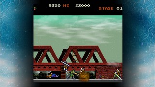 Rush'n'AttackPrix : 400 pts (4,65€) - Date de sortie : 23 mai 2007 Développeur : Backbone (Digital Eclipse) / Konami Plus connu chez nous sous le nom de Green Beret, Rush'n'Attack (1985) est une étape importante dans l'histoire de Konami car il préfigure Contra, jeu si déterminant que son nom est devenu celui d'un genre. Mais ne nous-y trompons pas, on est encore ici au stade où l'arcade repose entièrement sur le par-coeur, acquis dans la douleur à cause d'une difficulté impitoyable. Bien que le jeu soit court (un des succès consiste à le terminer en moins de 10mn !) avec ses 4 niveaux, il sanctionne le plus petit début d'erreur ou d'hésitation par la perte d'une vie. Avis aux amateurs, d'autant que ces gros paresseux de chez Digital Eclipse se sont abstenus d'inclure la possibilité de démarrer du niveau désiré.