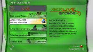 Il aura donc fallu attendre un peu mais désormais on sent la rivalité entre Sony et Microsoft jusque sur le Live Arcade. Déjà avec le remake de Worms sur XBLA, un jeu que tous les fans attendaient du fait de son côté multijoueurs jouissif, et qui d'une certaine façon entre en concurrence directe avec un jeu du PS-Store, Lemmings. Bien qu'il s'agisse de jeux complètement différents, ce sont avant tout deux légendes d'une certaine époque du jeu vidéo, et ces deux remakes ne sont graphiquement pas très éloignés. Ensuite, Microsoft fête la sortie de la Playstation 3 à sa façon sur le Live Arcade en mettant à disposition le 21 mars le mythique Castlevania Symphony of the Night, jeu de Konami sorti 10 ans plus tôt sur Saturn et.. Playstation. Castlevania XBLA démontre, du point de vue du joueur, à quel point la concurrence est une chose plus que nécessaire dans le monde du jeu vidéo : non seulement c'est le premier jeu à enfin outrepasser la ridicule limitation de 50mo par jeu, mais c'est aussi l'un des premiers jeux rétro du Live Arcade à s'extirper de la génération Arcade 1980, pour plonger dans l'univers 16/32bits. Il était temps. Mais les choses ne s'arrêtent pas là car dès la semaine suivante sort Jetpac Refuelled, l'incarnation même du remake réussi (version ZX spectrum d'origine, remake qui est bel et bien un vrai nouveau jeu plutôt qu'un simple lifting, petit paragraphe historique, mode multi... on est loin du copier-coller d'autres jeux rétro). Dans les semaines qui suivent, le XBLA se diversifie en enchaînant son premier rhythm game (Boom Boom Rocket), son premier jeu de golf (3D Ultra MiniGolf) et son premier flipper (Pinball FX). Jetpac RefuelledPrix : 400 pts (4,65€) - Date de sortie : 28 mars 2007 Développeur : Rare / Ultimate Play the Game Voilà des portages comme on aimerait en voir plus souvent sur le Live Arcade : Jetpac est un incontournable jeu ZX Spectrum de 1983, qui marqua le commencement pour ce qui deviendra le studio Rare, qu'on ne présente plus. En outre cette version XBLA, c'est un peu le professeur Microsoft qui emploie l'un de ses studios internes pour expliquer à ses élèves tierce partie à quoi doivent ressembler les remakes oldschool sur Xbox360 : D'abord un mode rétro, identique à l'original (ne manque que le mode deux joueurs alterné). Ensuite un mode remake qui ressemble plutôt à un nouvel épisode (graphismes totalement repensés, 128 niveaux au lieu de 16, système d'armement évolutif, ennemis beaucoup plus variés). Cerise sur le gâteau, un petit historique résumant le passé de Rare/Ultimate qui à défaut d'être complet à le mérite d'exister. Oui, Jetpac Refuelled est bel et bien le quatrième épisode tant espéré de la série des Jetman, et pas un simple remake opportuniste. Amateurs de rétro, de shoot à inertie, et de jeux intenses, vous ne pouvez pas passer à côté. A noter également une excellente idée à vocation communautaire : un des succès ne s'obtient qu'en affrontant dans le mode versus un joueur "infecté". L'infection a été, le jour du lancement du jeu, attribuée à trois joueurs choisis par Rare au hasard, en vue d'une propagation au gré des parties disputées en quickmatch (sélection aléatoire d'un adversaire). Il faut donc aller à la rencontre d'inconnus pour espérer obtenir ce succès. (voir les articles sur le jeu original & sur ce remake XBLA)